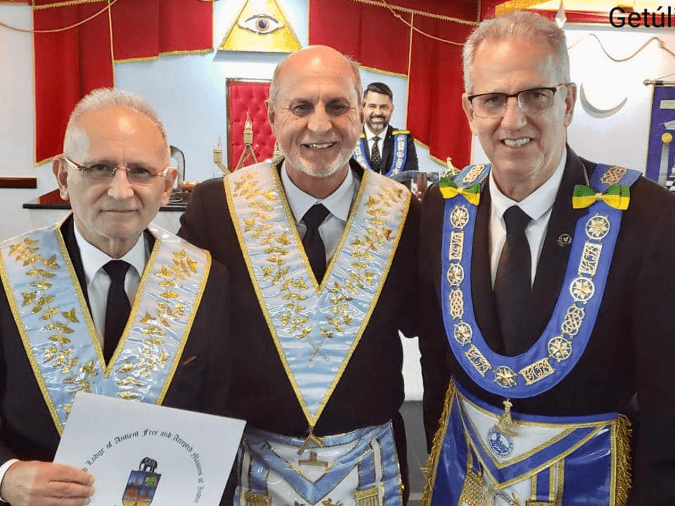 No flagrante, o irmão Hélio Leite, ladeado pelos filhos e irmão de Ordem.