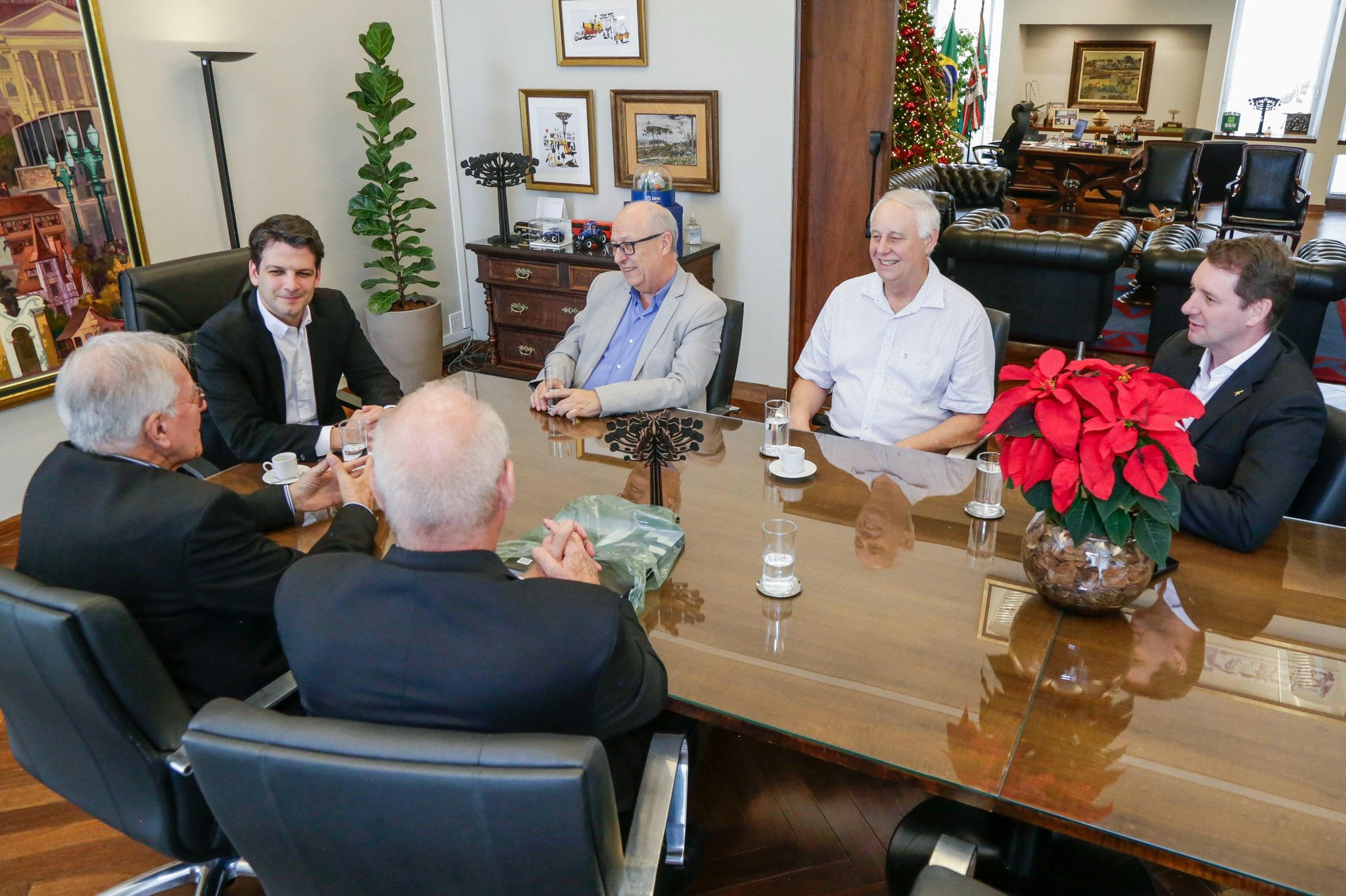 O encontro ocorreu no dia 08 de dezembro e contou com a presença do Soberano Irmão Ademir Cândido da Silva, GMG do GOB, do Sapientíssimo Irmão Adalberto Aluízio Eyng, GMGA do GOB, do Eminente Irmão Paulo Roberto Socher, GME do GOB-PR, do Poderoso Irmão Renato Pamplona, GMEA do GOB-PR, além do Irmão Ogeny Pedro Maia Neto, Presidente da URBS – Urbanização de Curitiba S.A.