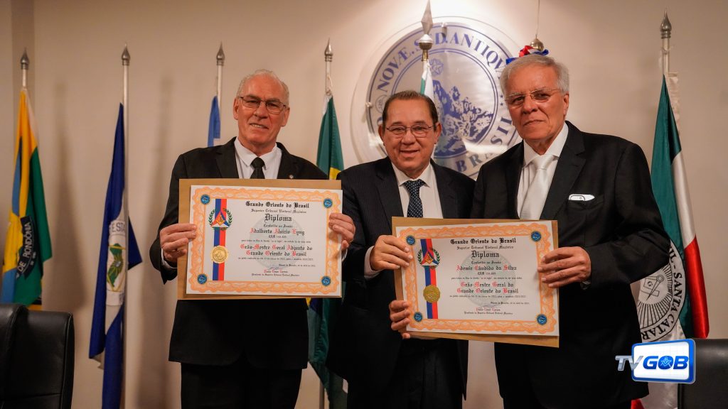 Em cerimônia no Auditório Eurípedes Barbosa Nunes na sede do GOB em Brasília-DF sob a Presidência do Eminente irmão Paulo Torres - Presidente do Superior Tribunal Eleitoral Maçônico acompanhados do seu vice-presidente Eminente Rodrigo Rizzo e a presença do Grão-Mestre Geral - Soberano Irmão Múcio Bonifácio Guimarães, os irmãos Ademir Cândido da Silva e Adalberto Aluízio Eyng, foram diplomados Grão-Mestre Geral e Adjunto do Grão-Mestre Geral do Grande Oriente do Brasil estando a partir deste momento aptos pela legislação para tomarem posse como os novos gestores do GOB em junho de 2023.
